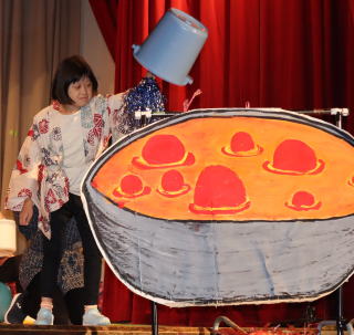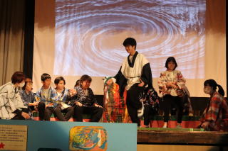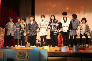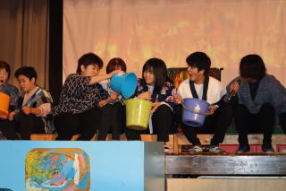 6組は4・5・7組と合同でステージ発表『地獄のそうべえ』〜できっこないをやらなくちゃ〜に取り組みました。水地獄ではバンブーダンス風に川を越えることを表現し、窯茹で地獄では自立活動で取り組んだ座位ストレッチやステップリーボックを盛り込み、みんなで協力して窯の火を消す活動をしました。